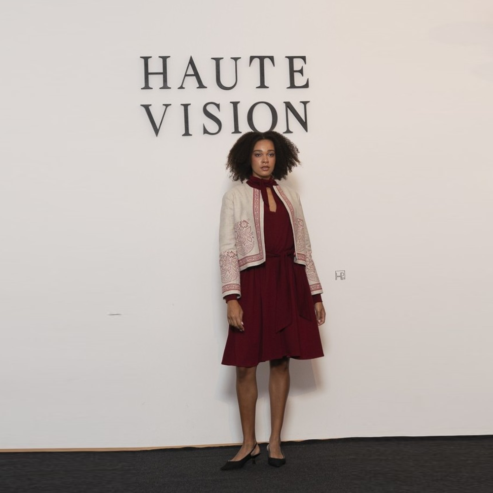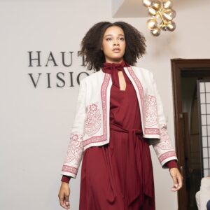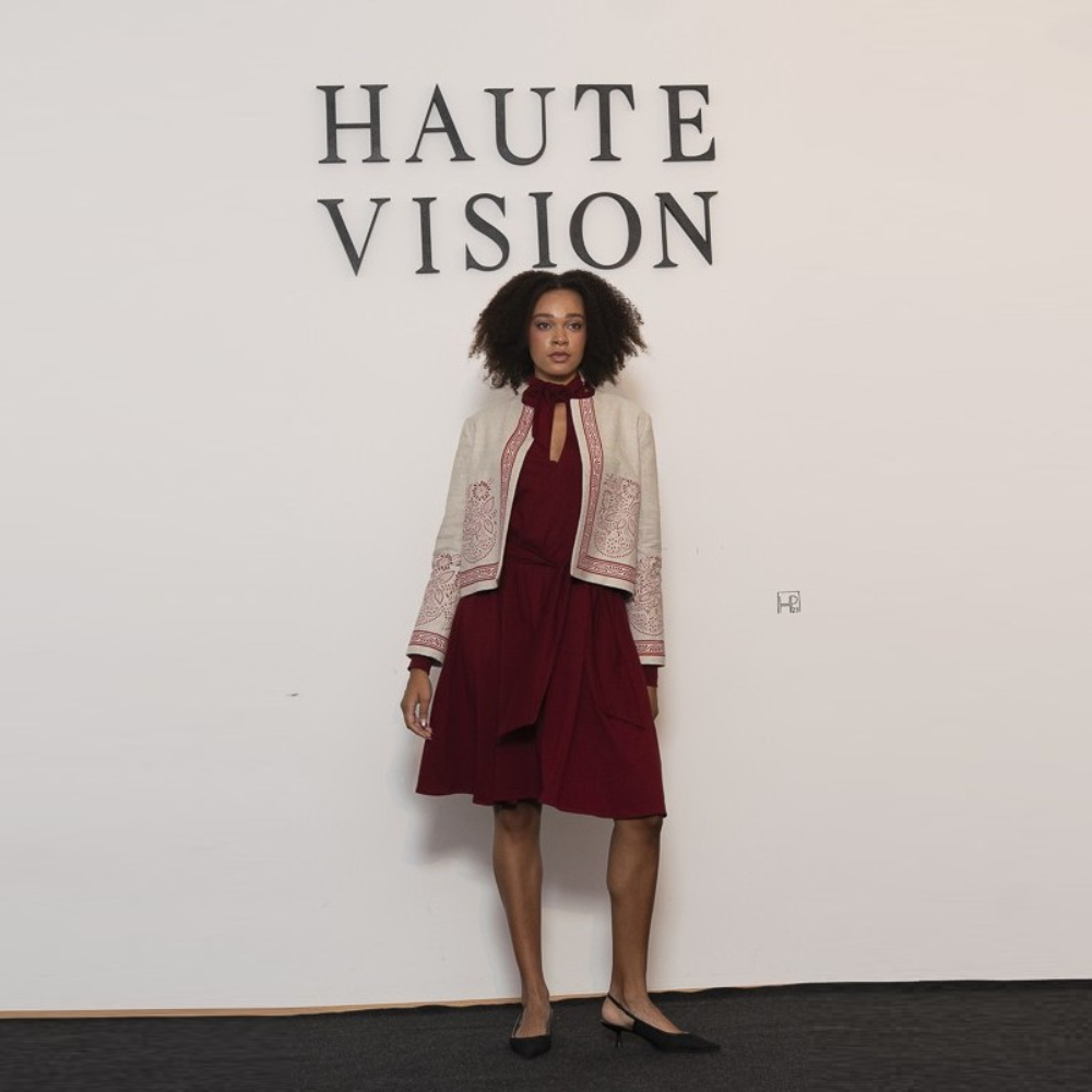 Diese Jacke besticht durch den hübeschen Handdruck und den Bordürendruck an den Kanten. Sie ist aus einem Mühlviertler Leinen Denim gefertigt, der Handdruck wird für mich nach meinen Ideen von der Handdruckwerkstätte Wagner in Bad Leonfelden angefertigt. Die Wagners sind weithin bekannt für ihren Blaudruck – für mich haben sie den roten Farbtopf geöffnet.
