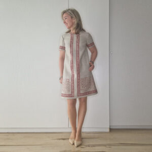 Das Kleid Rote Kornblume ist schlicht geschnitten, den besonderen Reiz macht hier der Bordürendruck aus, der sich vorne spiegelt. Es ist etwas kürzer geschnitten, denn schließlich soll es ja nicht langweilig sein. 😉 Aber ich fertige es natürlich in deiner Wunschlänge an!