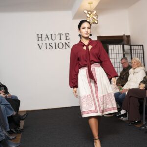 Der Leinen Denim ist mittelschwer und unfassbar angenehm auf der Haut zu tragen – daher auch im Frühling und Sommer zu tragen. Die Farbzusammenstellung – dunkelroter Druck auf beigem Leinen – erlaubt viele Stylingmöglichkeiten: mit braunen Stiefeln und Pulli im Herbst und Winter, mit goldenen Tops im Sommer oder mit einer schönen Bluse (wie etwa der Bluse Giulia in Rot).